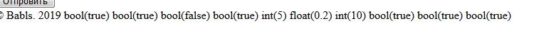 bool(false) bool(true) bool(false) bool(true) bool(false) bool(true) int(5) float(0.2) int(10) bool(true) bool(true) bool(true)